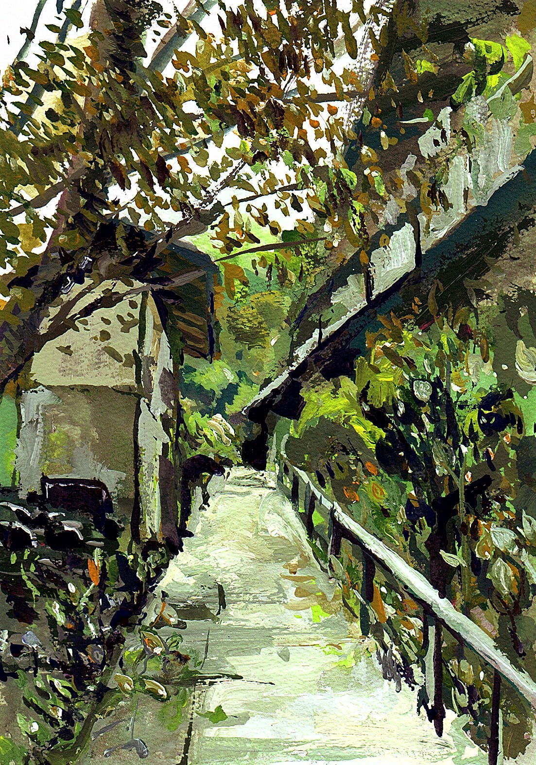紙、アクリルガッシュ