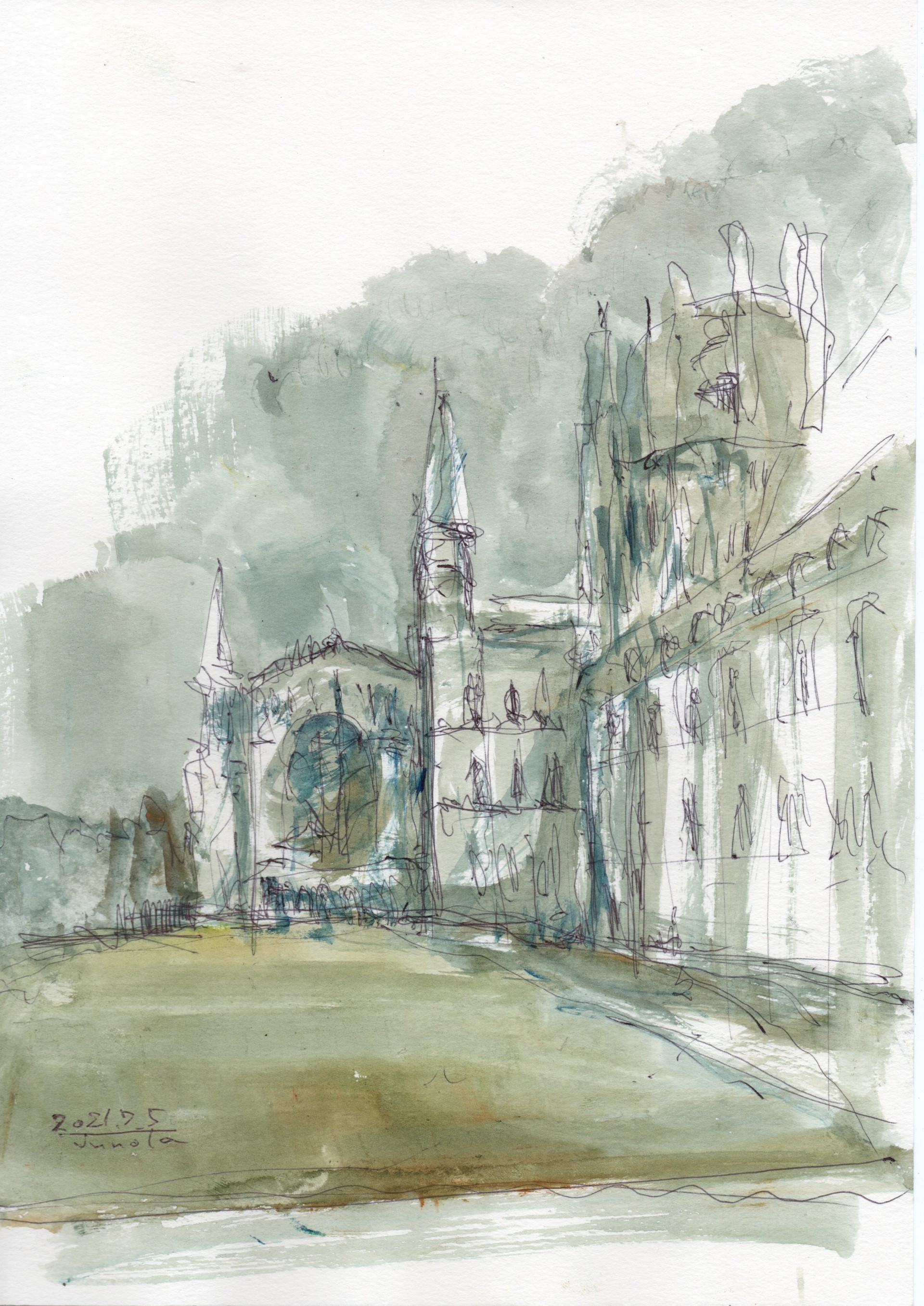 紙、ペン、透明水彩
