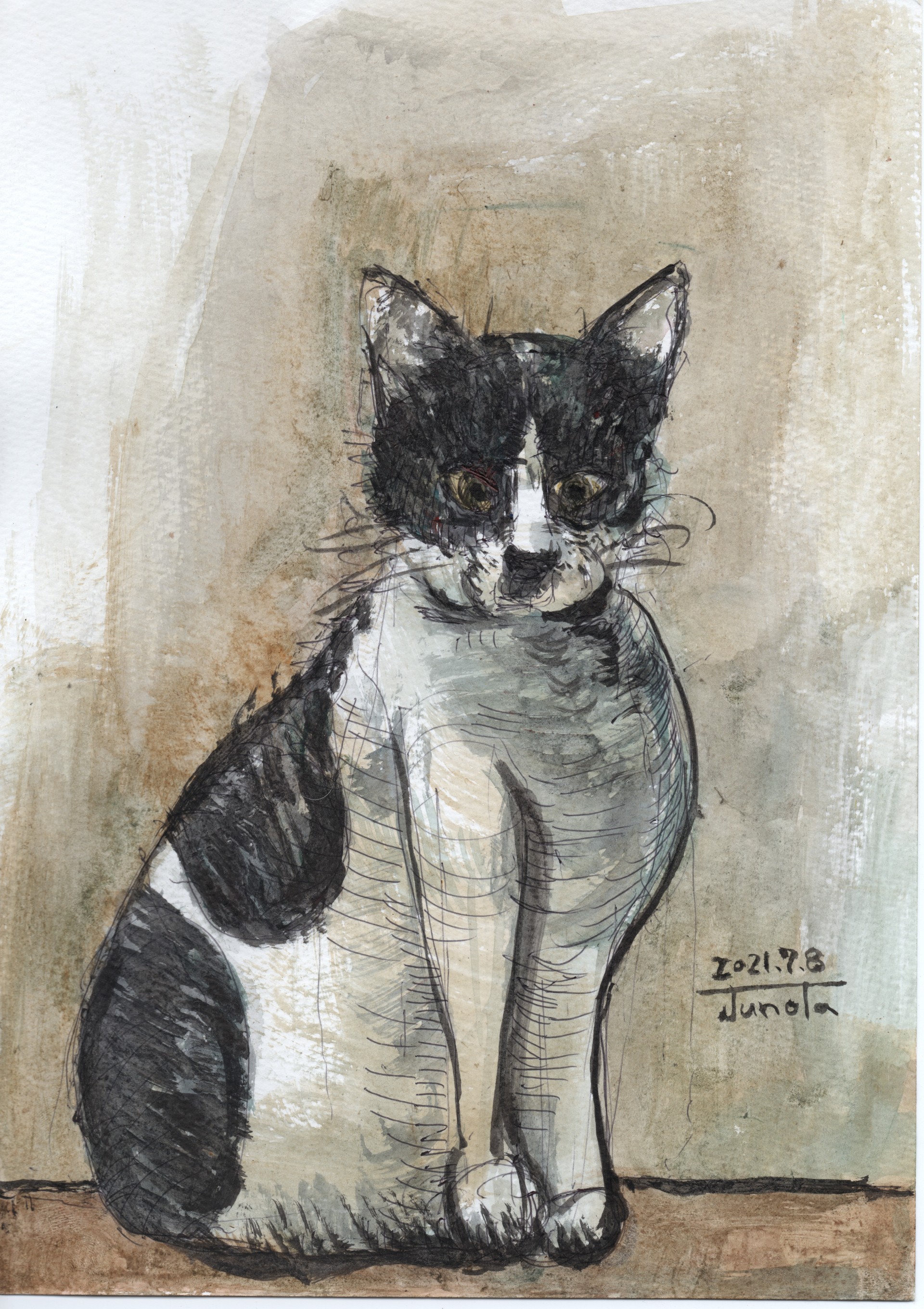 紙、ペン、透明水彩