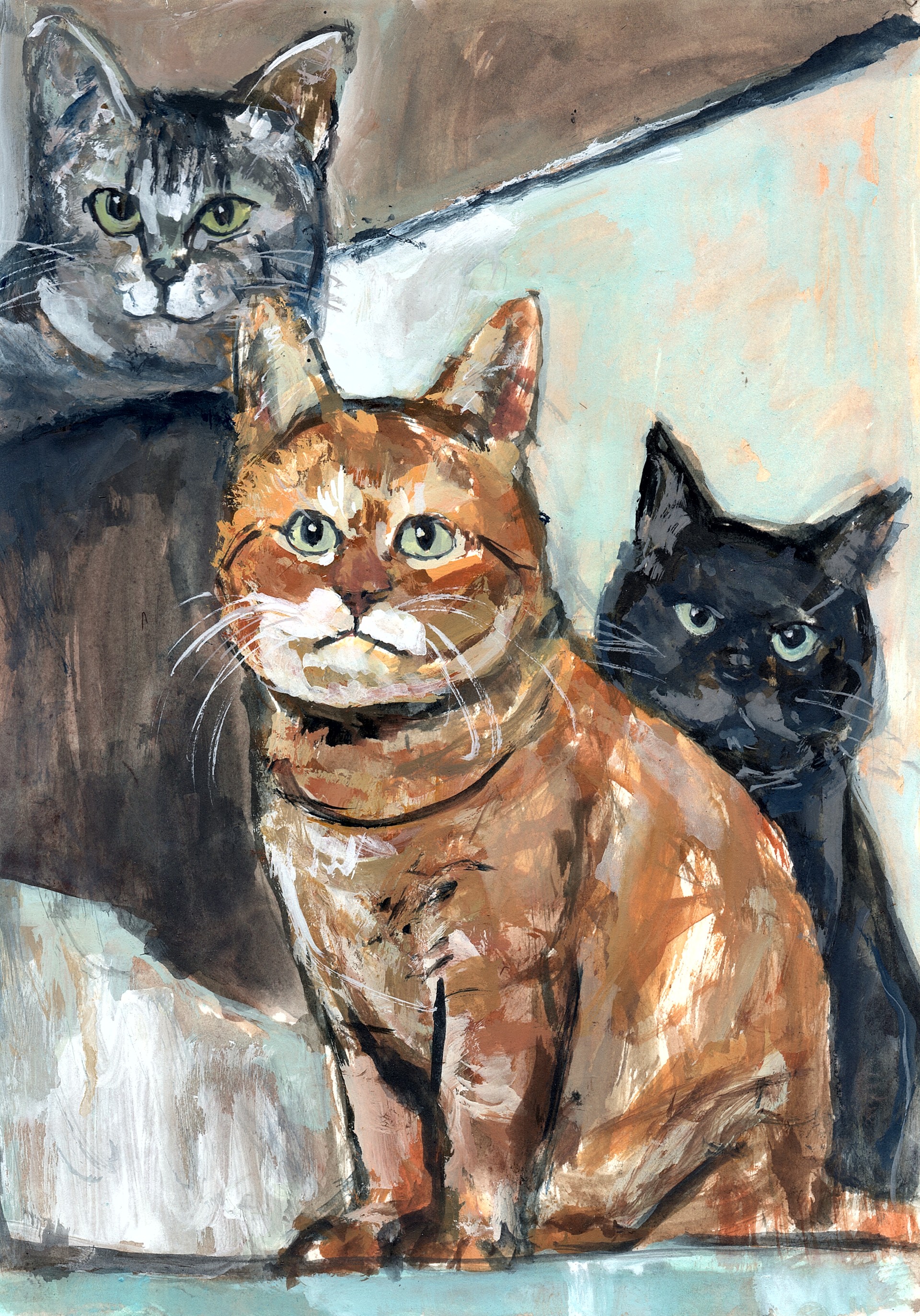 紙、アクリルガッシュ