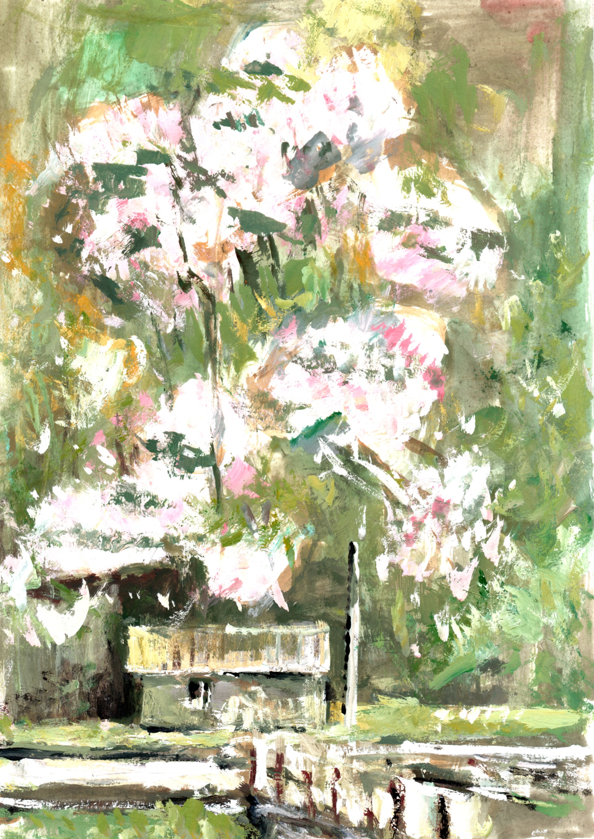 紙、アクリルガッシュ