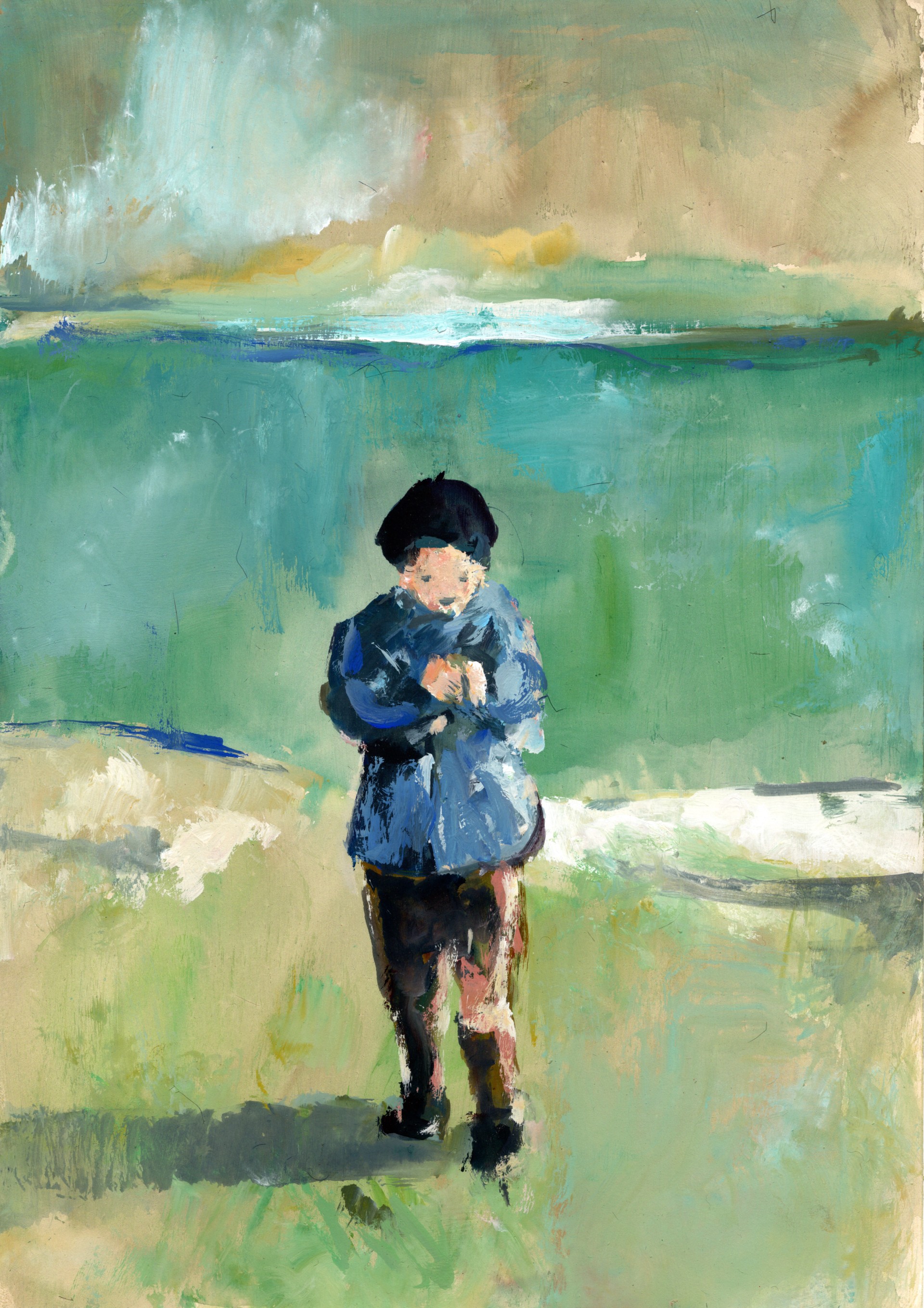 それが今回行った湖は板チョコレートみたいなコンクリートで固められていて、緑色のアミアミのフェンスがあり、水面は自分の立っている地面から何メートルも下方にある。とても手が届かない。せいぜい石ころを投げ込めるだけだ。まぁ、とりあえず、湖の周りを歩いてみることにした。遠くで雷がなっている。家を出たときにはあんなに晴れていたのに。どこか座れる場所を探して、湖を眺めながら本を読んだり絵を描いたりしようと思っていたのだけれど、なかなかそういう風に落ち着ける場所がない。歩き続けていると、気がついたら車を停めた場所から湖の反対側まで歩いてきてしまった。草が伸び、あまり手入れされていない感じがする。途中ひとりのおじいさんとすれ違ったが他に人はいないようだった。そして、恒例のグリーンアドベンチャーがあった。グリーンアドベンチャーというのは、公園とかハイキングコースに置いてある木の名前当てクイズだ。日本中の公園に置いてあるらしく、僕もMもいろんな場所でこのグリーンアドベンチャーにチャレンジしている。東京にも千葉にもあったけど、まさか岐阜にもあるとは……。このごろいろんな種類の木に触れているからか、あるいは、グリーンアドベンチャーの経験を積んできたからか分からないけれど、正解率がややアップした。イヌツゲ、朴、メタセコイヤ、キンモクセイ、アカマツ... クイズの文字が書かれている板はもうだいぶダメージを受けているようで、文字や絵がかなり薄い。看板上部の札をめくると答えが書いてあるのだけれど、中には札が取れてしまって答えがむき出しになっているものもあった。ノンストップで僕らは歩き続けていた。時折、道端からザザッと何者かが逃げていく音がした。1匹だけヘビを見た。時々、通路の脇にベンチがおいてあるのだけれど、じめっとしていて、とてもそんな所で休む気になれなかったので、歩き続けてきてしまったのだった。途中ひらけた場所で休憩した。もう湖を3/4 周くらいしていた。ベンチに腰掛け、少しだけ本を読んだ。Mはベンチに横になり、僕の膝を枕にして昼寝をはじめる。そのままトーベ・ヤンソンの「誠実な詐欺師」という本をMに読み聞かせる。僕らの他には誰もいなかった。オールレーズンを食べ、ビーノを食べた。カルピスを飲んだ。まだ遠くで雷がなっている。心なしか冷たいような風が吹いてきた。雨が降ってくるといけないので車にもどった。その後は、もとの道を車でもどり家へ向かう。途中、「紅梅屋」という小さなスーパーに寄り道をしたけれど、二人ともお菓子の食べすぎでお腹がいっぱいだったので、何も買わずに店を出た。家に着き、風呂を沸かす。湯船にお湯をためている間、Мの絵をアクリルで描く。「なんかいつも老けて描かれるよね」と言われた。猫の絵を描こうと思っていたのだけれど、動き回るので難しかった。風呂に入り、晩ごはんを食べる。鶏肉とたまねぎ、エリンギ、