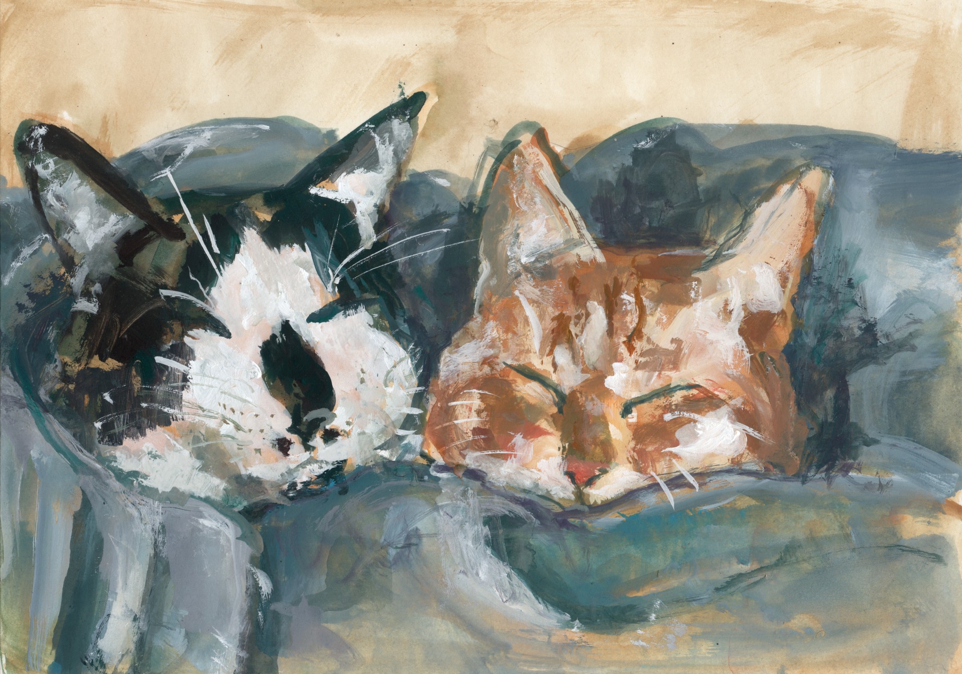 紙、アクリルガッシュ