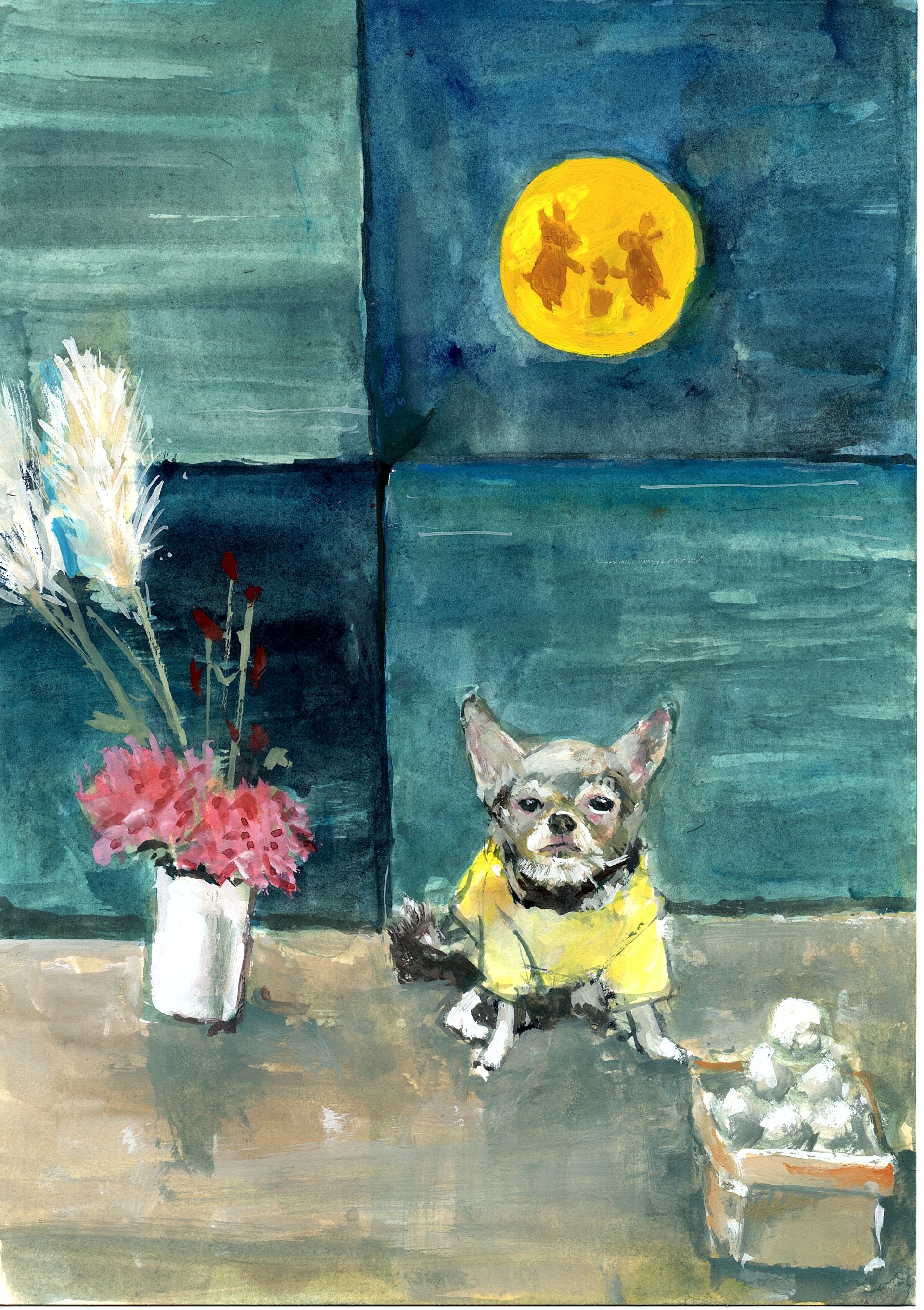 紙、アクリルガッシュ