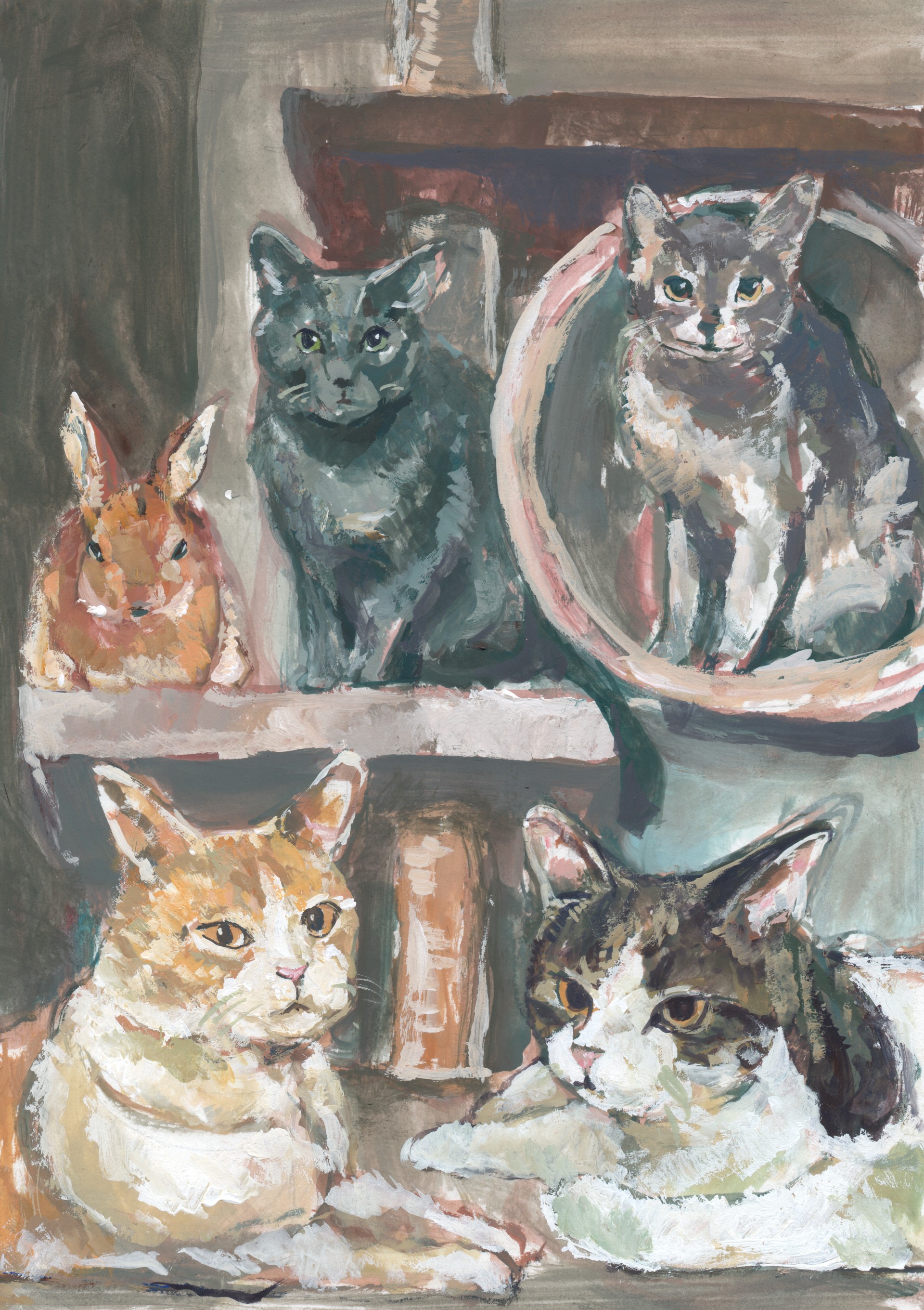 紙、アクリルガッシュ
