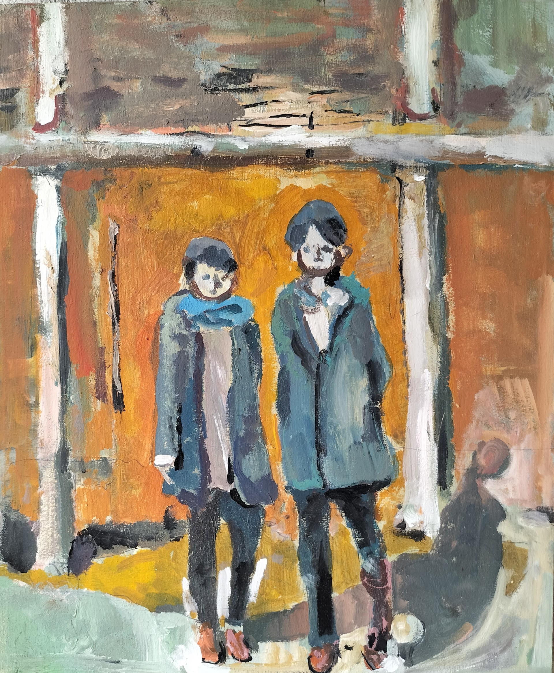 木製パネル、アクリルガッシュ