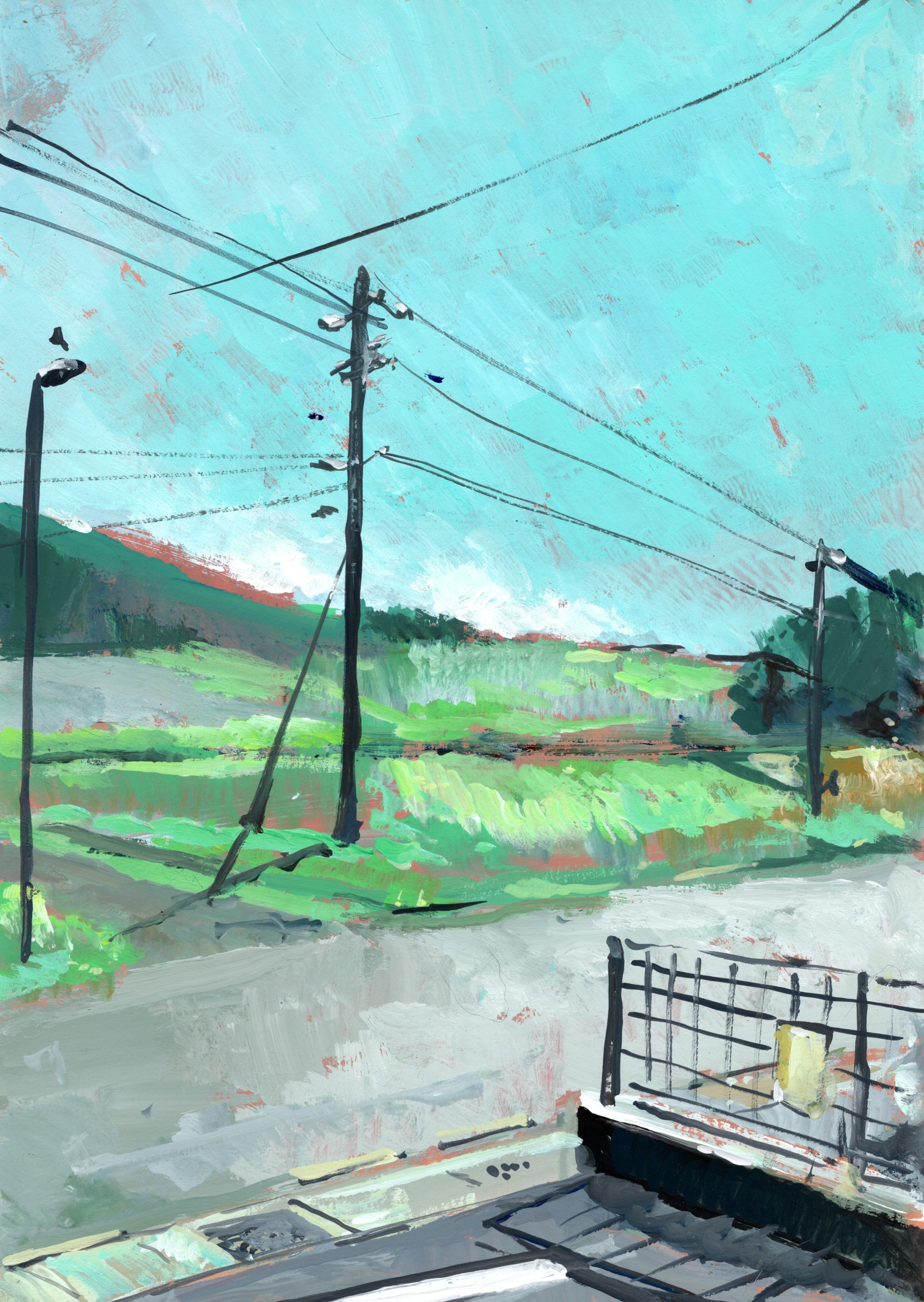 熱もないし、取り立てて体がだるいというわけでもない。天井を見上げ、しばらく何も考えず、目を閉じてみる。深呼吸をする。猫はあきらめて何処かへ行き、部屋にはまた例の一定間隔の寝息が充ちている。なんだろうか、このいつもと違うという感覚は考えるのだけれど、結局、その原因を見つけ出せないまま、再び男は眠りに落ちていく。6時半。携帯にかけておいたアラームが鳴る。それを聞き、猫も飛び上がってすかさず鳴き始める。長い、長い、長い鳴き声だ。男は起き上がり、階段を下りていく。猫が後から追いかけてきて、そして抜き去って階段を下りて行った。小さなお尻がふるふると揺れている。途中、男が立ち止まっていることに気づいた猫は、お尻をこちらに向けたまま上階の方を見上げ、目をくりくりさせながら、みゃあ、と今度は短く鳴いた。キッチンスケールに猫の皿を乗せ、そこへいつもの餌をはかり入れる。はかっているそばから猫が顔を近づけてきて食べ始めようとするので、男は手で払いながら、ちょっと待って、待てって、とつぶやいた。すると猫はちょっとだけ皿から距離を開け、おとなしく座り直し、パラパラと皿に盛られていく粒たちを眺めている。濃い、かつおだしのような匂いが男の鼻を刺激した。その刺激は同じように猫の鼻にも届いたらしく、急にそわそわし始める。我慢できないというような感じで立ち上がり、あたりをうろうろし始める。ちょっと勢いよく盛りすぎて、多めに皿に乗ってしまった。余計な分を男が袋にもどしていると、たまらず猫は「おい、何をもたもたしてるにゃ」とでもいうような感じで大きめの声で、長めに鳴いた。はかり終え、皿を持ち居間へ移動すると猫も一緒についてくる。いつもと同じだ。毎朝のこと。今朝のは気のせいだったか、あるいは、そう感じたことそれ自体も夢だったのかもしれない。男はそう思い始める。電気ポットに水を入れスイッチを入れる。スイッチがオレンジ色に光り、ゥゥゥゥゥ... と小さな音を立て始める。そう、いつも通りだ。一日のんびりと過ごした。絵をかき、文章をかき、本を読んで過ごした。先日ゆずの木に付いていたのを生け捕りにして飼っていたあおむしは今朝がた見たときにはまだ蛹だったのに、昼すぎ、いや夕方になっていただろうか、ふと気が付くと、羽化して立派な蝶々に変身していた。薄い羽、細やかな模様の入った薄い羽が紙細工のようで美しい。芋虫から蛹、そして蝶という劇的な三段変化。知識として知ってはいたけれど、蝶という虫はなんて鮮やかに、軽やかに、軽薄ともいえるくらいに軽々と、何の後腐れもなく変容するのだろう。ちょっとした感動である。そして外に放つ。ひらひらと雨の中を舞い上がり、そして見えなくなった。昼寝をし、買い物に出かけた。帰ってくると、注文していた草刈り機のヘッド部分が届いていた。明日、付け替えてみることにする。レタスとハムの炒めものと、