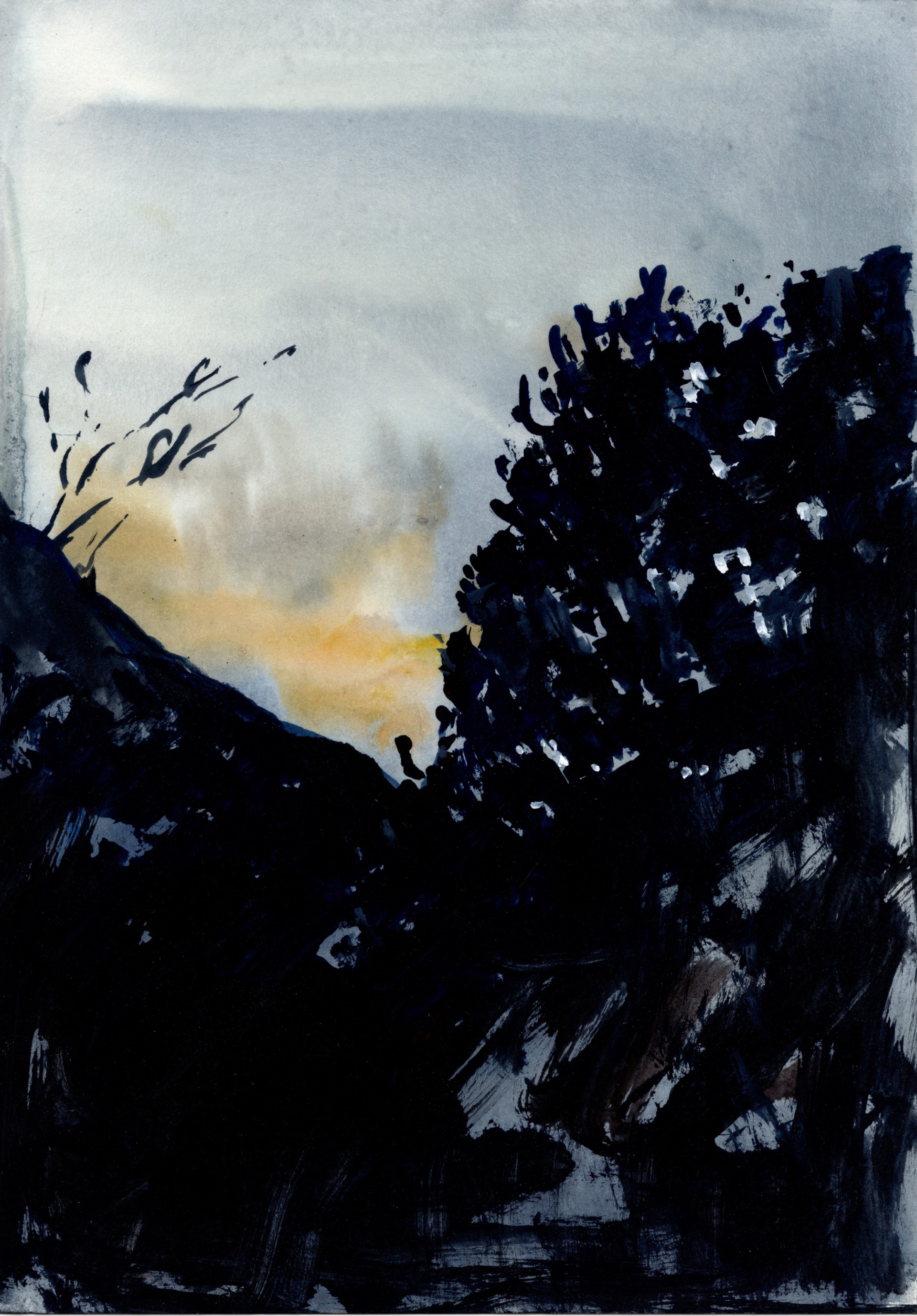 紙、アクリルガッシュ