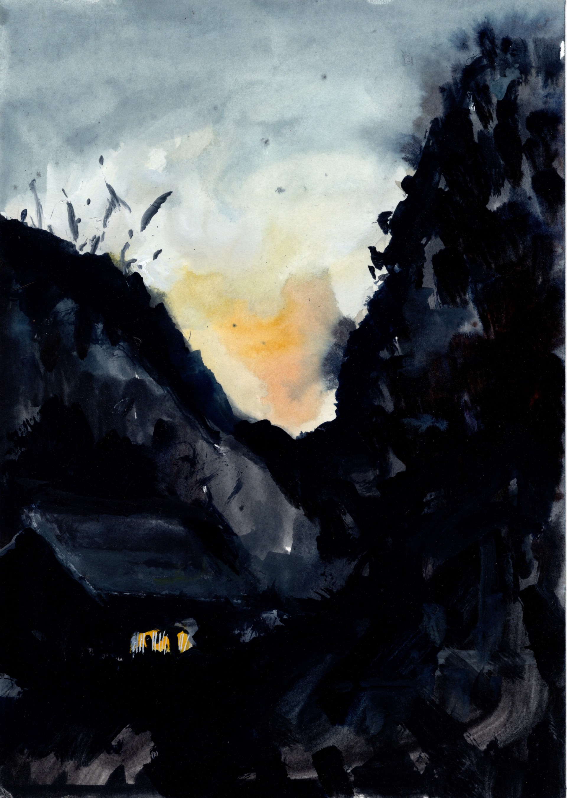 紙、アクリルガッシュ