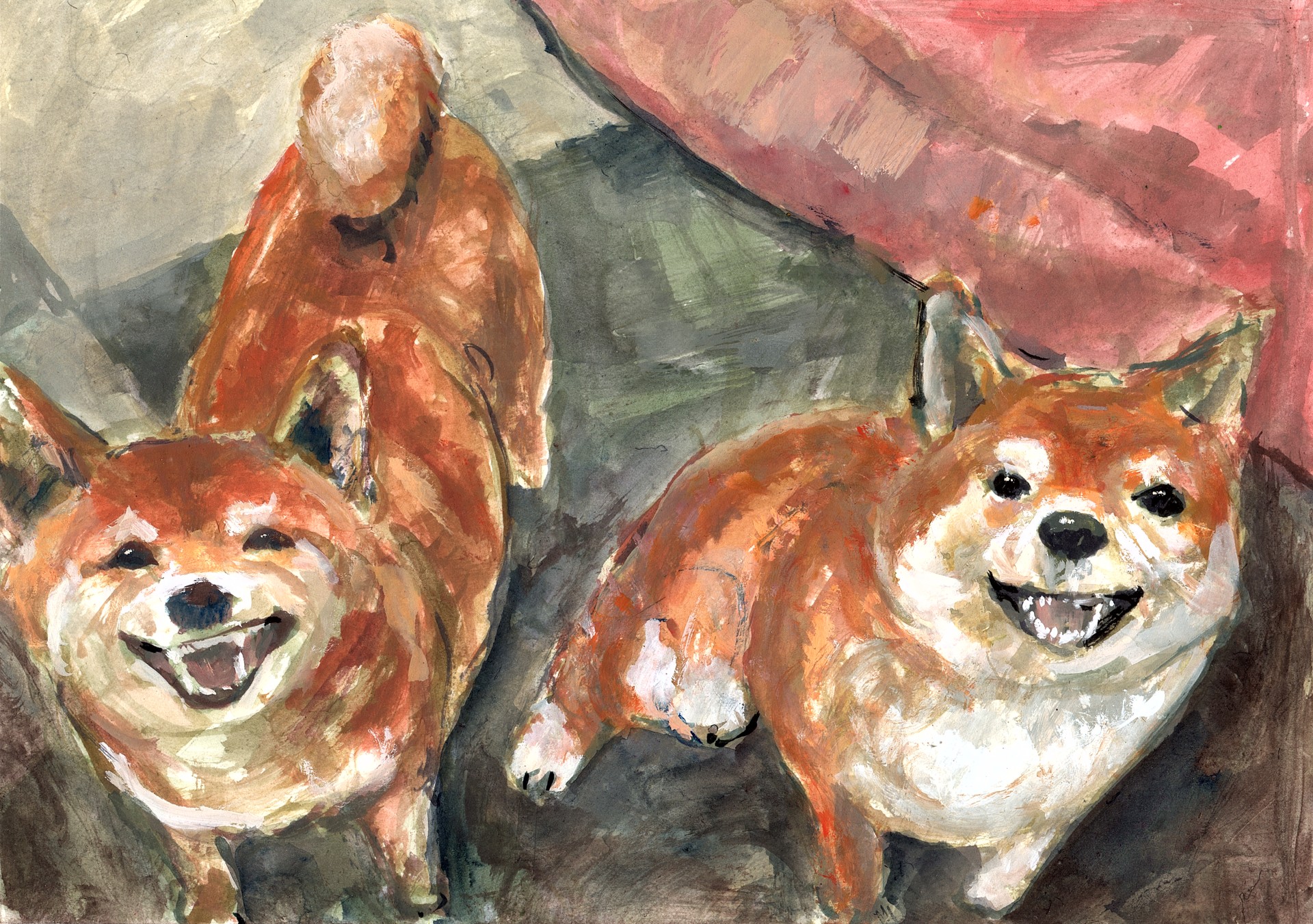 紙、アクリルガッシュ